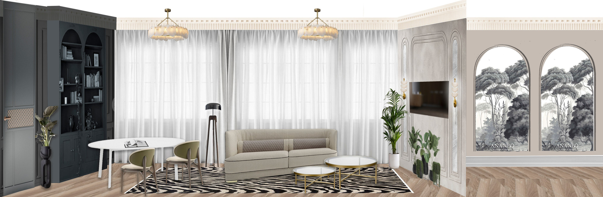 Концепция: «Современная классика для роскошной жизни». Пространство для требовательной и динамичной женщины, где статусная эстетика гармонично сочетается с практичностью для семейной жизни. Это не музей, а живой, дышащий дом, в котором роскошь выражается в безупречном качестве, а не в показной помпезности.