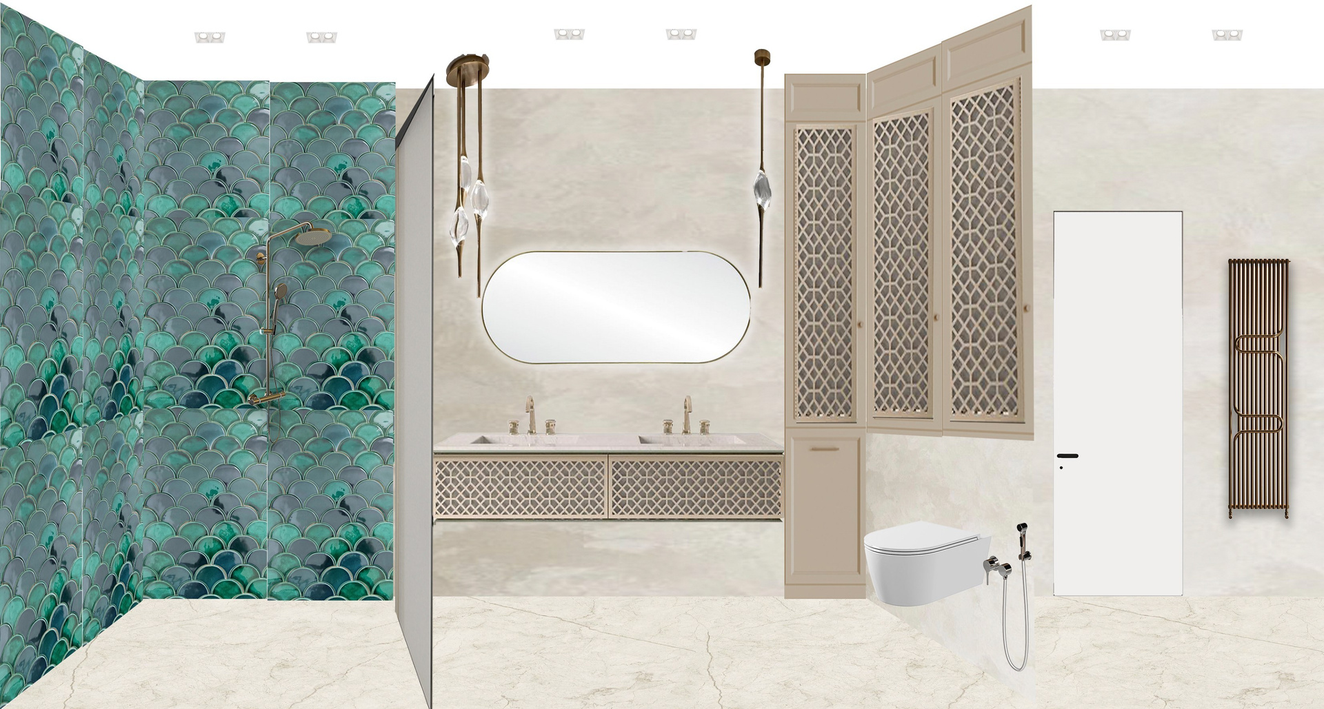 - Практичная роскошь для семьи: Пространство организовано с учётом потребностей детей: есть игровая зона, интегрированная в общую гостиную, с лёгкими трансформируемыми элементами. В детских комнатах использованы те же элитные материалы, но в более лёгкой, современной интерпретации. Объёмное скрытое хранение помогает поддерживать идеальный порядок.