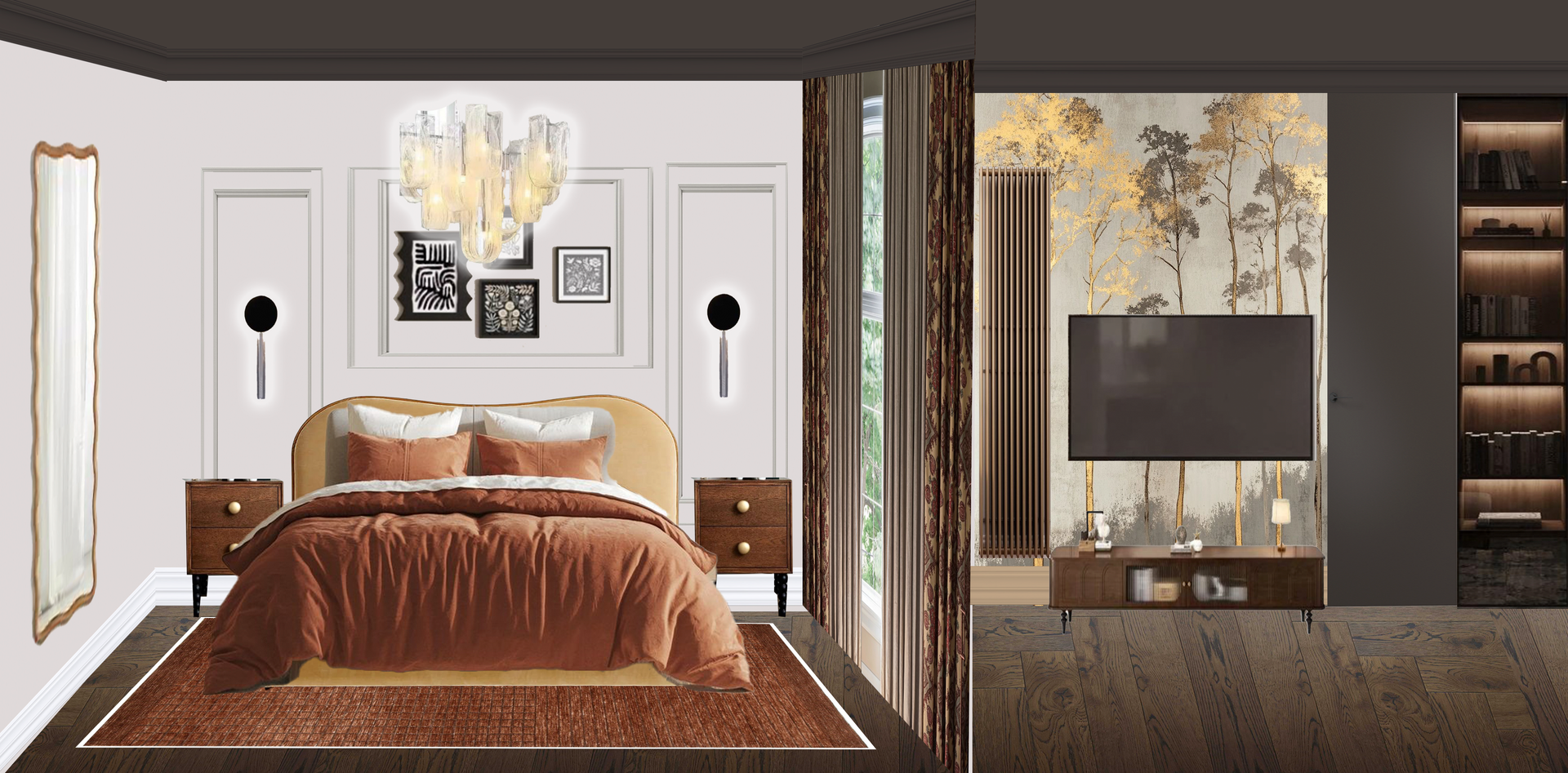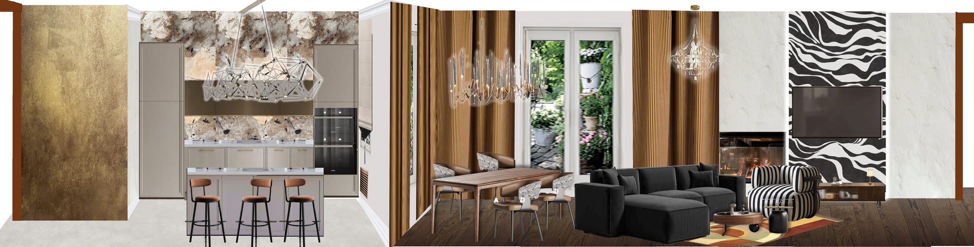 Концепция: «Конструктор мечты». Пространство для пары, чья жизнь — синтез стройки, искусства и путешествий. Это дом-мастерская, дом-галерея и дом-кокон для будущей большой семьи, где каждая деталь — сознательный выбор, смелый эксперимент или трофей из поездки. Здесь нет границ между работой, вдохновением и бытом.