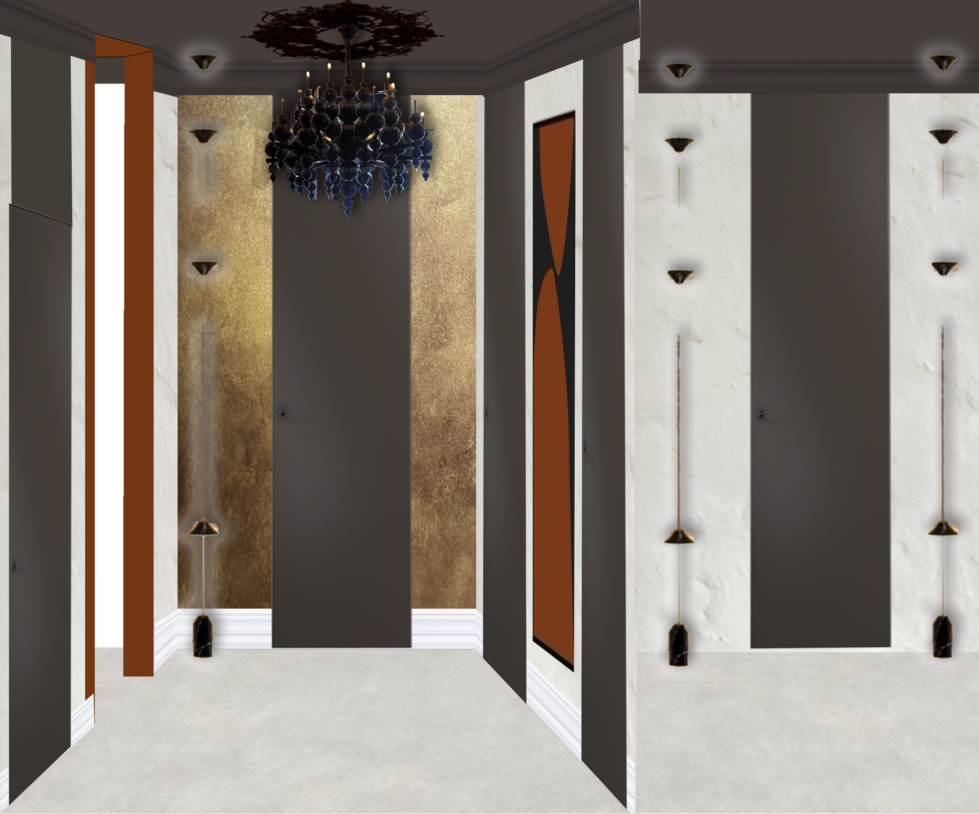 - Стены как выставочные залы: Одна стена может быть отделана панелями из кортеновской стали, другая — служить поверхностью для проектора или росписи. Активно используются встроенные ниши для сменных арт-объектов, привезённых с мировых выставок (например, Salone del Mobile или Венецианской биеннале).