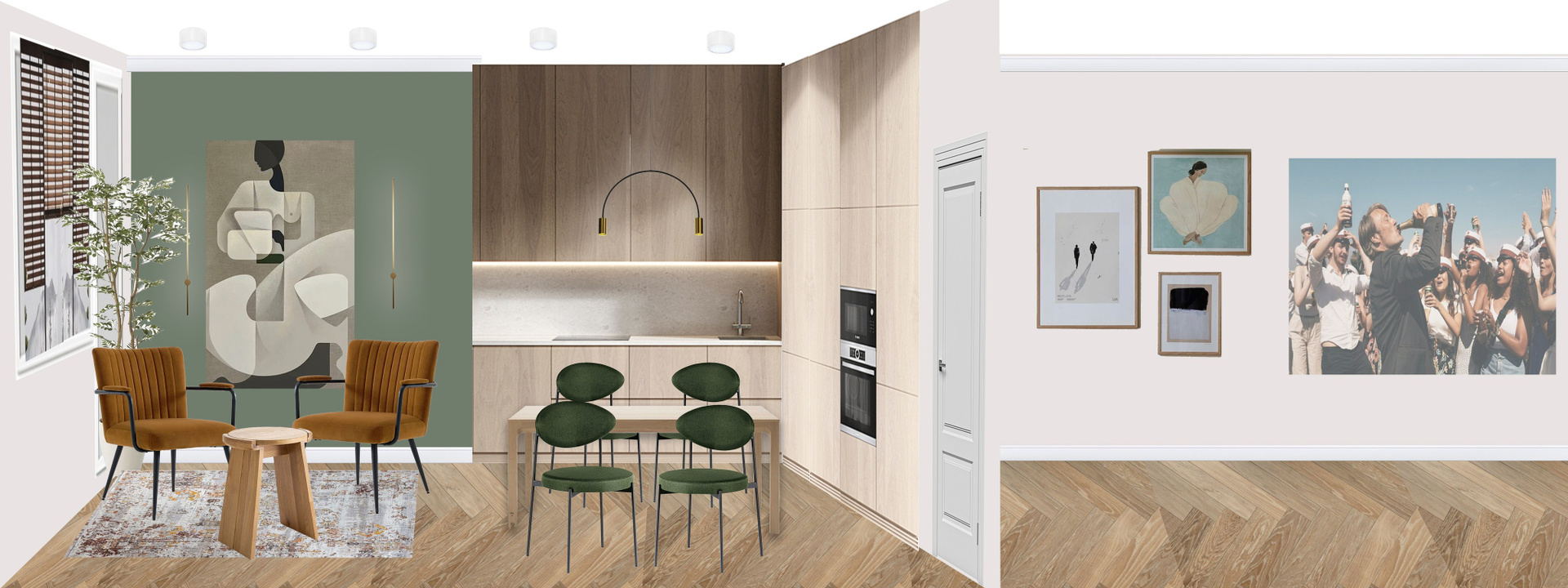 Концепция: «Три в одном: компромисс как искусство». Этот проект — результат уникального дизайнерского эксперимента по поиску баланса между противоречивыми ожиданиями. Исходная задача — создать универсальное пространство с тремя потенциальными сценариями жизни (инвестиция, для старшего поколения, для молодой семьи) — трансформировалась в смелое высказывание, где сложность стала главной силой.