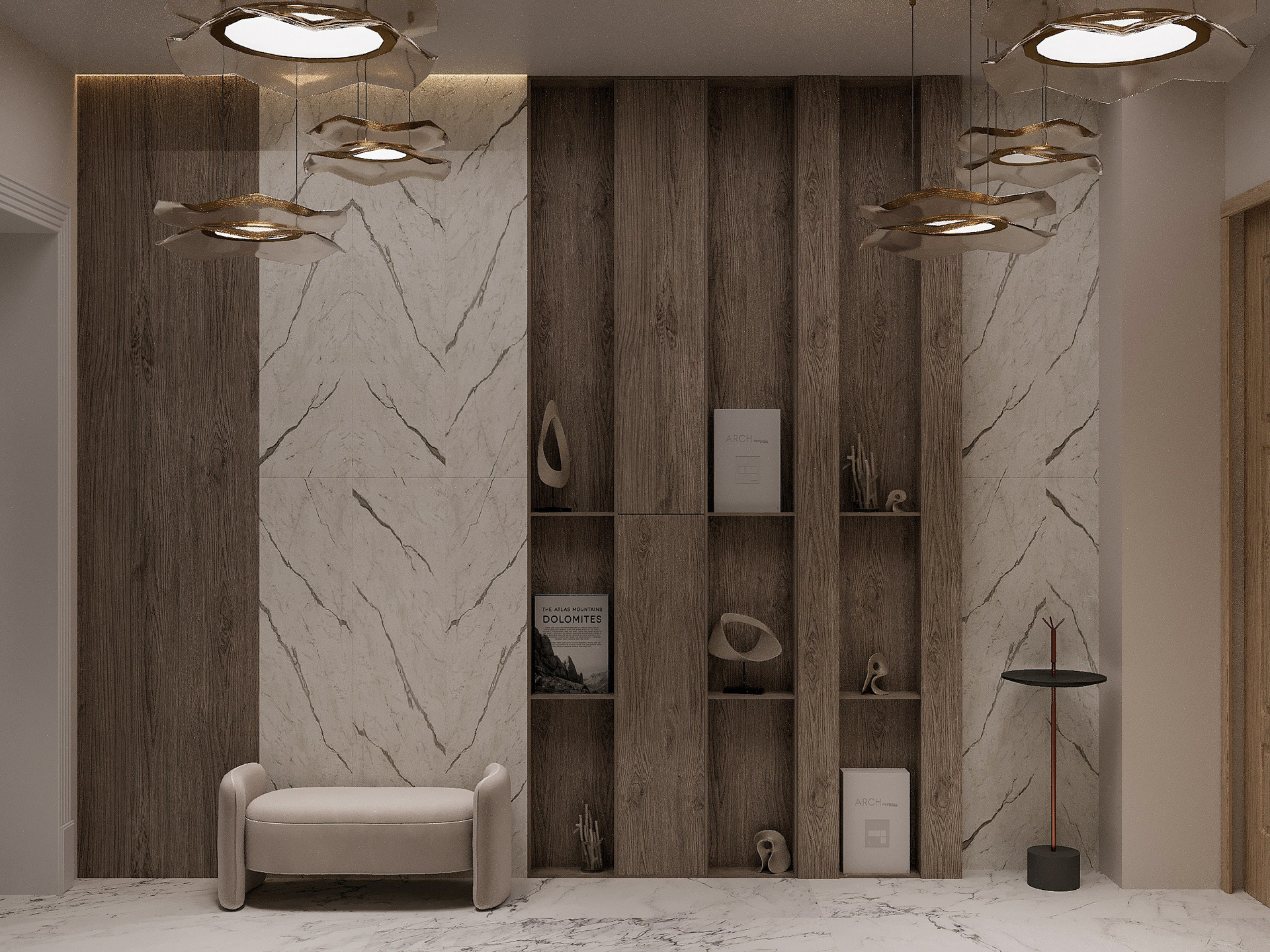 - Галерея впечатлений вместо декора: Дом становится живой картой путешествий. Стены отданы под картографические объекты, полки спроектированы для коллекций минералов, фотоархивов и сувениров. Один из акцентов — большая тактильная карта мира для маршрутов и планов.